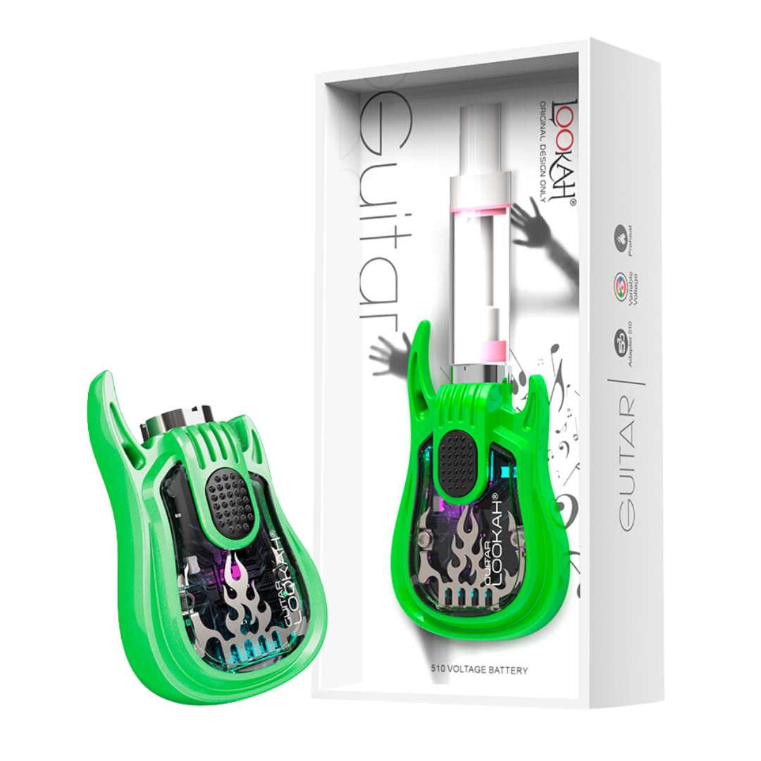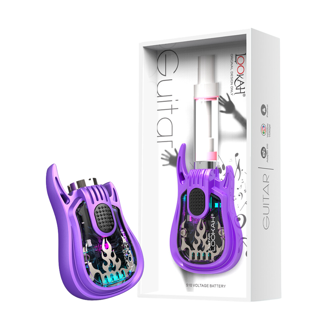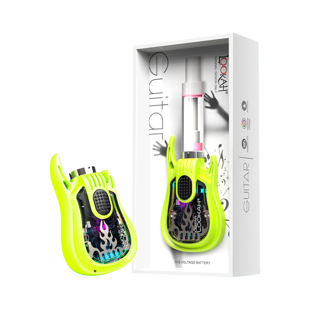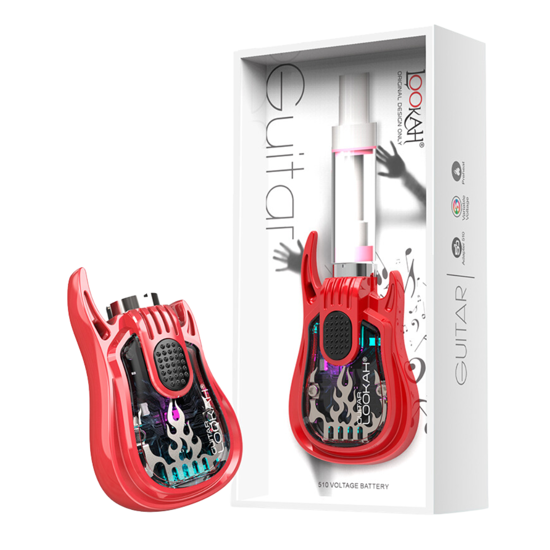 The Lookah Guitar is a 510-thread vape battery shaped like a miniature electric guitar, built for cart users who want something more fun than the usual stick batteries. With 350mAh capacity and three voltage presets, it handles most standard oil cartridges while giving you a conversation starter that clips right to your lanyard.