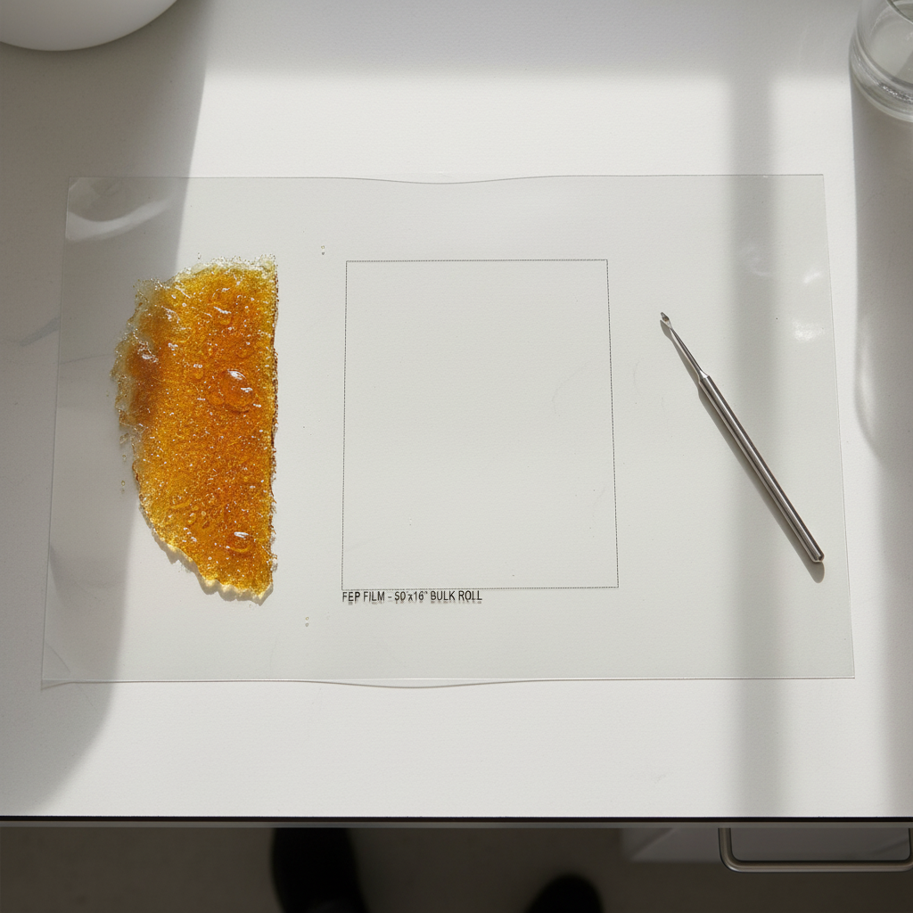 It’s a different tool. Many people use FEP for purging and slab storage because of its clarity and chemical resistance, and keep purpose-made papers in their rosin extraction workflow where needed. If you’re pressing, always follow equipment guidelines and your local regulations when choosing contact materials.