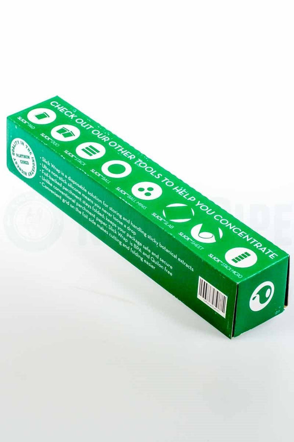 Oil Slick Wrap is a 12-inch-wide continuous roll measuring 50 feet in length, giving you 50 square feet of usable material per roll. The core construction pairs ultra-smooth silicone-coated food-grade parchment on the top side with aluminum foil backing that creates a waterproof, terpene-sealing barrier. The silicone coating is Quilon-free and BPA-free, making it completely safe for direct contact with your concentrates. Each roll weighs approximately 1.5 lbs and is made in the USA. It performs across the full range of concentrate types - shatter, rosin, budder, crumble, live resin, distillate - and maintains stability from freezer temperatures up to room temperature, though we don't recommend it for applications above 100°F (it's not a baking paper replacement for heat work).